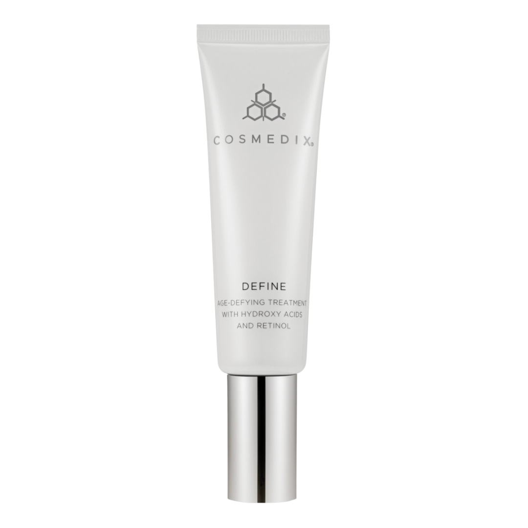 Сироватка Define Cosmedix забезпечує максимальну стимуляцію всіх природних процесів, які відбуваються в клітинах. Цей багатий, відлущуючий і багатозадачний продукт ніжно відновлює і зволожує шкіру. Define м’яко очищає ороговілі клітини шкіри, надає їй гладкості, зменшує зморшки і різні дефекти. Цей крем для обличчя, розроблений як перший продукт догляду за шкірою для вашого знайомства з ретинолом, містить 2% ретинолового комплексу AGP і альфа-гідроксикислоти, що робить його досить м’яким для всіх типів шкіри. Заспокоюючі шкіру рослинні компоненти допомагають поліпшити колір обличчя, не жертвуючи зволоженістю шкіри, дозволяючи комплексу 2% AGP проникати в кілька шарів для поліпшення результатів. Зморшки зменшуються, а тон шкіри стає більш рівним. Після тривалого застосування антивікової сироватки ви відчуєте себе знову красивою і привабливою, адже ваша шкіра отримає ідеальний вигляд.