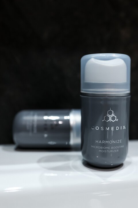 Крем для відновлення мікробіома Cosmedix Harmonize – це багатофункціональний засіб на основі пробіотичного комплексу. Продукт усуває запальні процеси, нормалізує природний рівень зволоження, вирівнює тон та текстуру шкіри. Поживні пробіотики сприяють зволоженню шкіри, відновлюючи її природний бар’єр, який утримує вологу. Комплекс рослинних, у тому числі, фруктових екстрактів, сприяє захисту від агресивних факторів навколишнього середовища, заспокоює шкіру та при регулярному застосуванні робить більш рівним тон та мікрорельєф. Крем Harmonize завдяки своїм активним інгредієнтам здатний в короткі терміни відновити та підтримати мікробіом шкіри, тим самим запобігти акне та висипу.