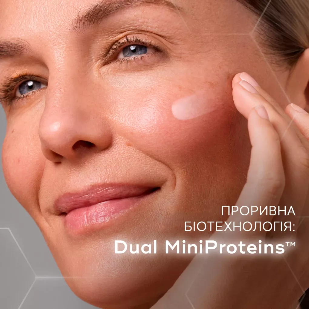 Потужна сироватка для обличчя, яка поєднує в собі невагому текстуру, проривну технологію Dual MiniProtein проти ознак старіння, глибоке зволоження та помітне покращення тонусу шкіри.