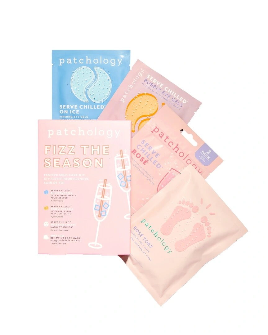 Приготуйтеся сяяти цього святкового сезону з Patchology! Лімітований набір Fizz The Season містить необхідні продукти, щоб надати вашій шкірі гладкість та сяйво. Освіжаюча маска для ніг миттєво пом’якшує та зволожує ваші ніжки, а дует гідролевих патчів охолоджує, надає енергію та тонізує. Рожева маска для обличчя подбає, щоб шкіра була зволоженою та сяючою. Вам залишається тільки піддатися святковому настрою!