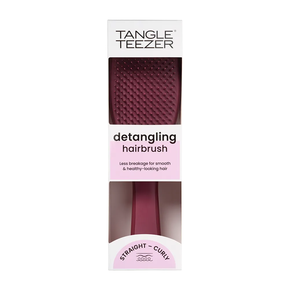 Tangle Teezer The Ultimate Detangler – універсальна щітка з ручкою для щоденного використання. Щітка легко ковзає по волоссю, не травмує його і попереджає ламкість. 325 дворівневих подовжених гнучких зубчиків дозволяють The Ultimate Detangler легко та дбайливо розплутувати вологе волосся. Завдяки ергономічній ручці, щіткою зручно користуватися навіть у душі. Tangle Teezer The Ultimate Detangler також дбайливо розчісує сухе волосся, надаючи їм блиску та гладкості. Не використовуйте із феном.