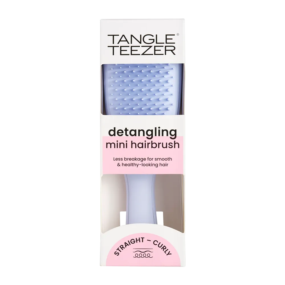 Tangle Teezer The Ultimate Detangler Mini — мини-формат знаменитой модели The Ultimate Detangler. Запатентованные двухуровневые зубчики бережно и быстро распутывают влажные пряди, а также равномерно распределяют маски и бальзамы по волосам. Благодаря уменьшенному размеру щетку удобно брать с собой, а также использовать детям. Специальное отверстие на ручке позволяет прикрепить The Ultimate Detangler Mini к косметичке и иметь при себе в любой ситуации. В результате регулярного использования Tangle Teezer волосы становятся гладкими и блестящими. Не используйте с феном.